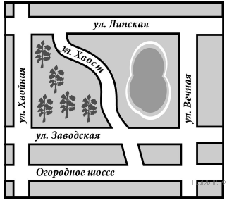 Если встать на улице Хвост лицом к озеру, то слева будет Липская улица, а справа — Заводская улица. Липская улица проходит мимо леска и сразу пересекается с Хвойной улицей. Удивительно — в лесу ни одной сосны, а улица Хвойная. Говорят, раньше были сосны, но потом лиственный лес их задавил. Хвойная пересекается с Заводской и затем с Огородным шоссе. Огородное шоссе специально построили в объезд посёлка. Там теперь много машин, а наша Заводская стала тихой.