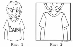 Версия для печати и копирования в MS WordВаня написал на футболке своё имя (см. рис. 1). Затем он подошёл к зеркалу. Нарисуй, как будет выглядеть отражение его имени в зеркале (рис. 2).