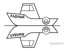На ри­сун­ке изоб­ражён катер и его от­ра­же­ние в воде. На борту ка­те­ра на­пи­са­но на­зва­ние «Лад­ный». На­пи­ши на­зва­ние ка­те­ра на от­ра­же­нии в воде.