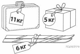 По правилам авиаперевозок, если багаж весит больше 20 кг, то за перевес нужно доплатить. Рассмотри рисунок с багажом туриста и ответь на вопрос: за сколько килограммов туристу придётся доплатить?