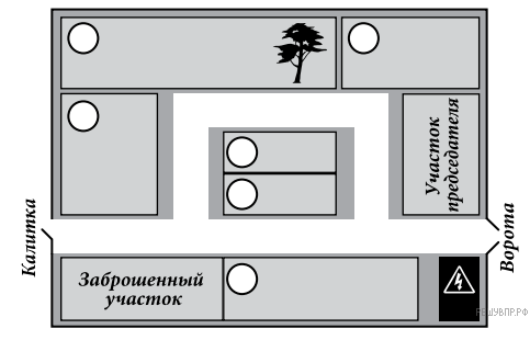 Посередине у нас два маленьких участка. Там живут Елена Петровна и Евгений Иванович. Наша сосна бросает тень на огород Евгения Ивановича тоже. Но он не ругается, а, наоборот, радуется, что есть такая большая сосна. Калитка у Елены Петровны выходит на другую сторону — к даче Алексея Ивановича. По вечерам они вместе пьют чай, и он рассказывает Елене Петровне страшные истории про трансформаторную будку и заброшенный участок, который рядом с его дачей.